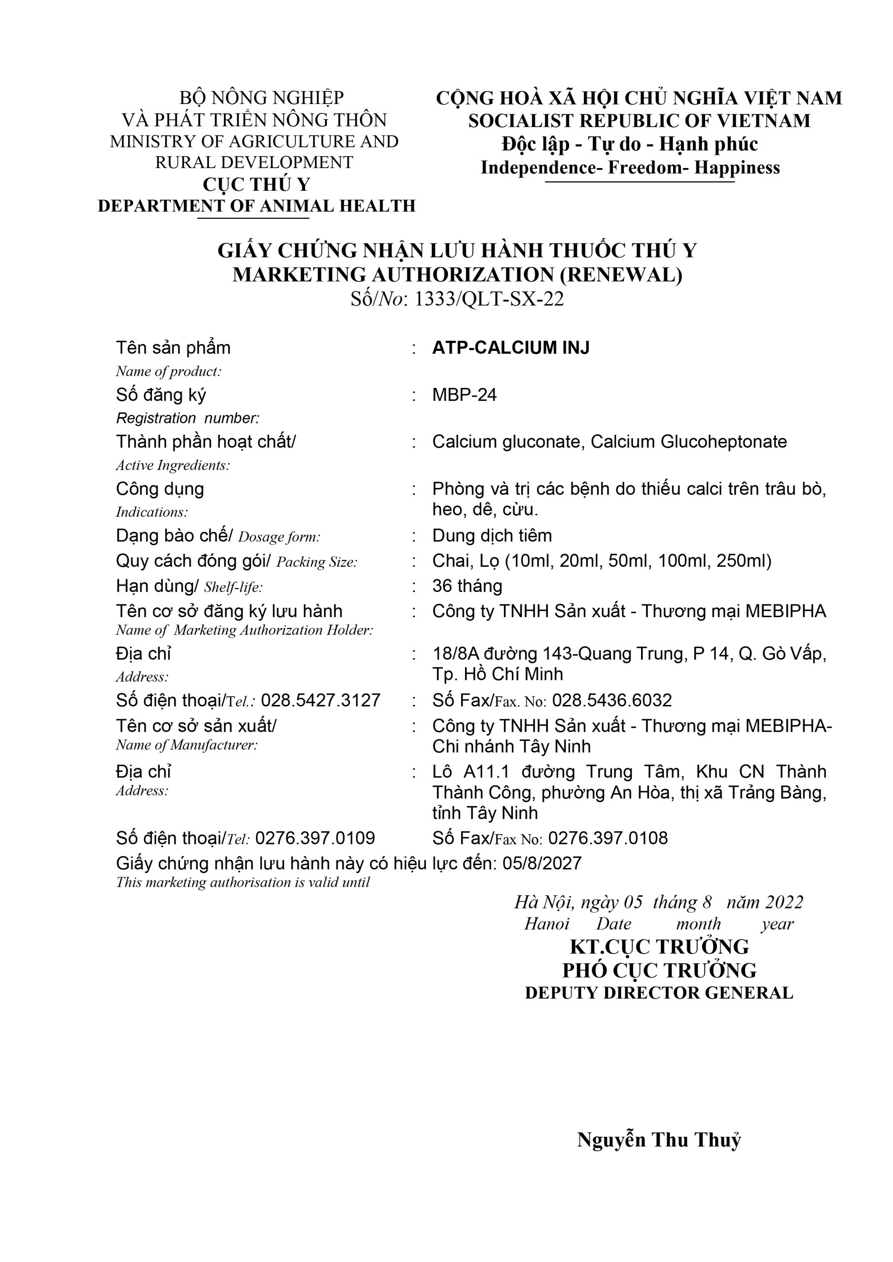 ATP-CALCIUM INJ là 1 giải pháp cân bằng tốt để bổ sung calci cho gia súc.