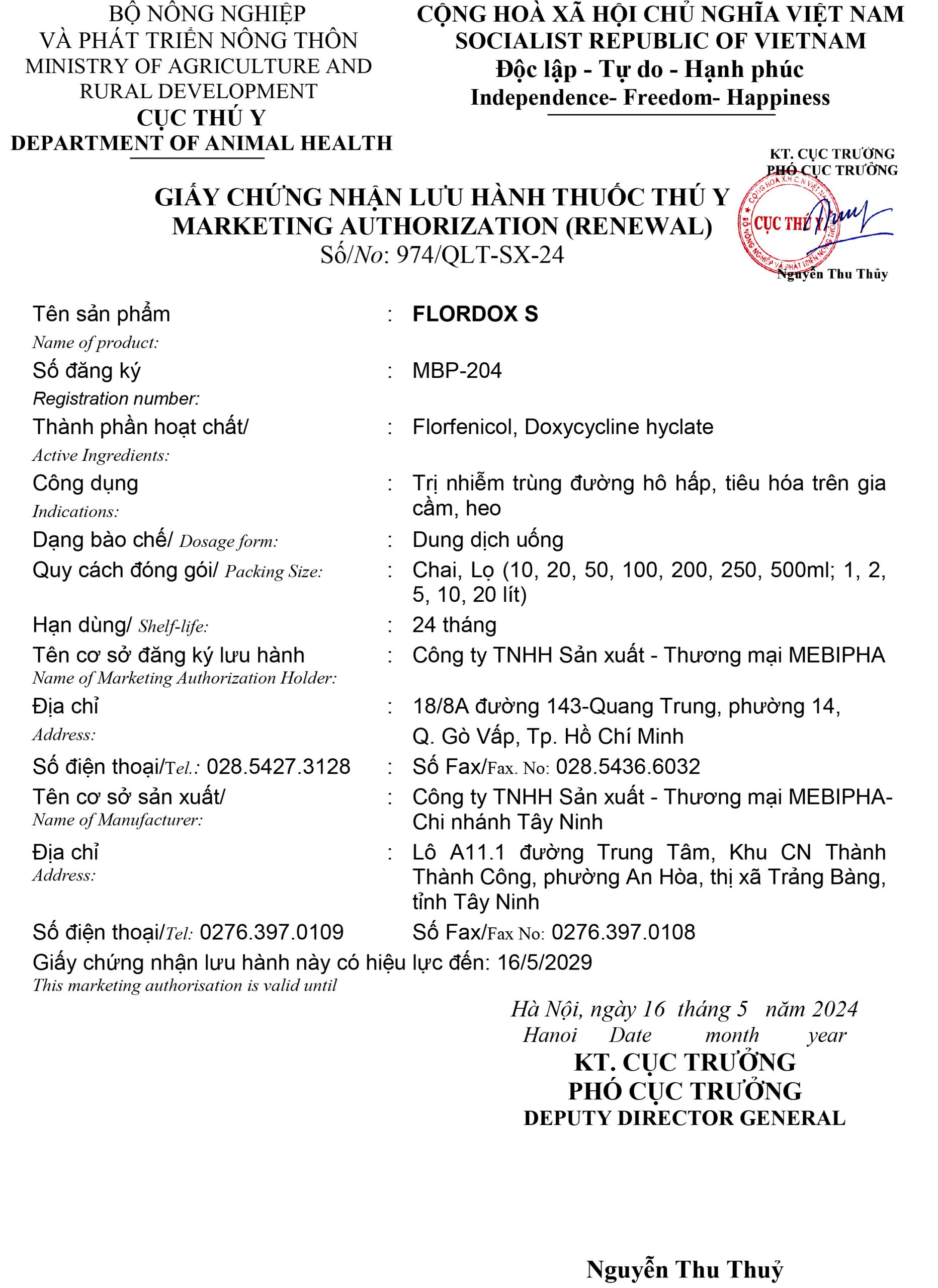 1ml/10 – 15kg thể trọng hoặc 1ml/2 – 3 lít nước uống, dùng liên tục trong 4 – 6 ngày.