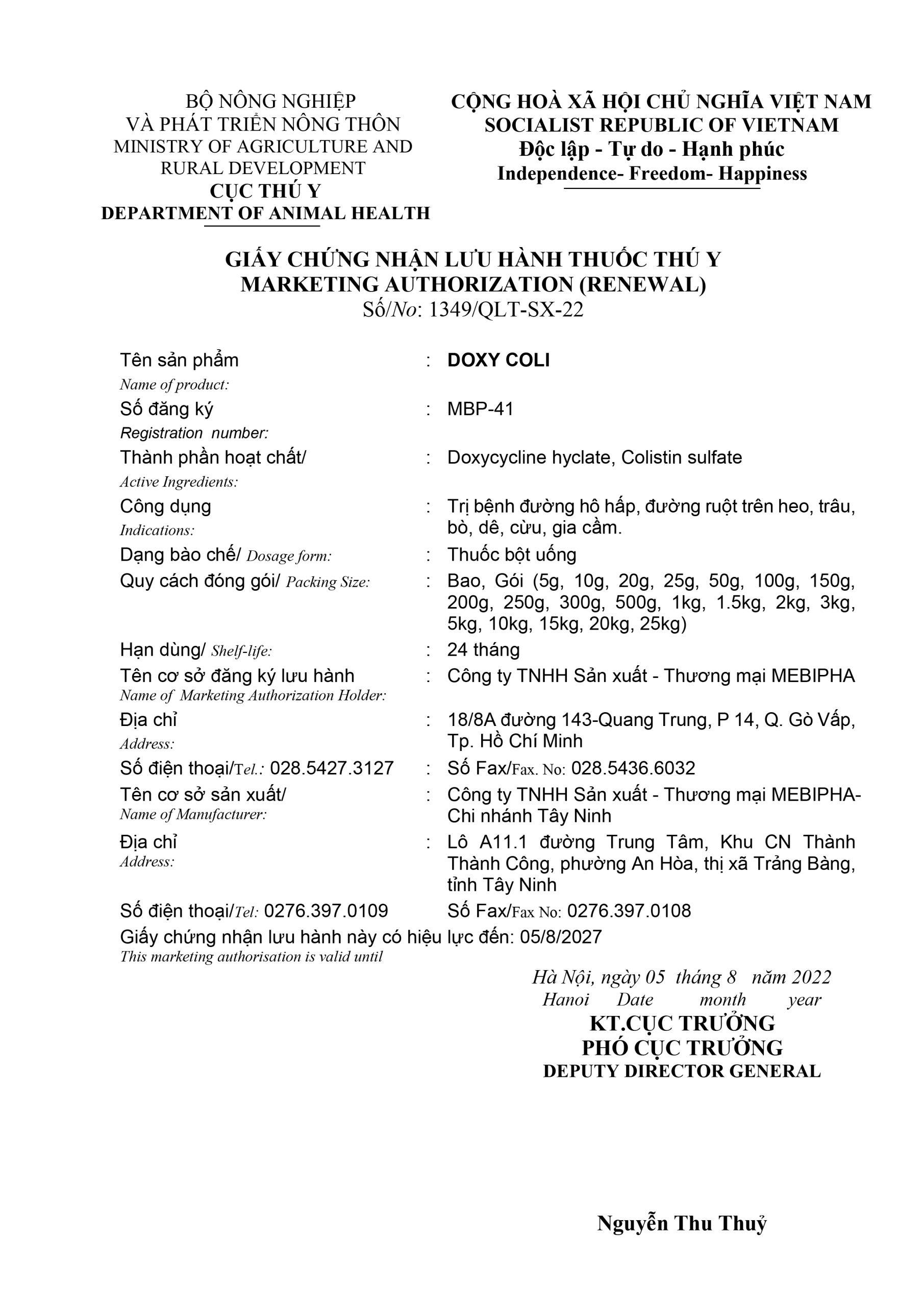 DOXY COLI có hiệu quả với các bệnh hô hấp và tiêu hóa: