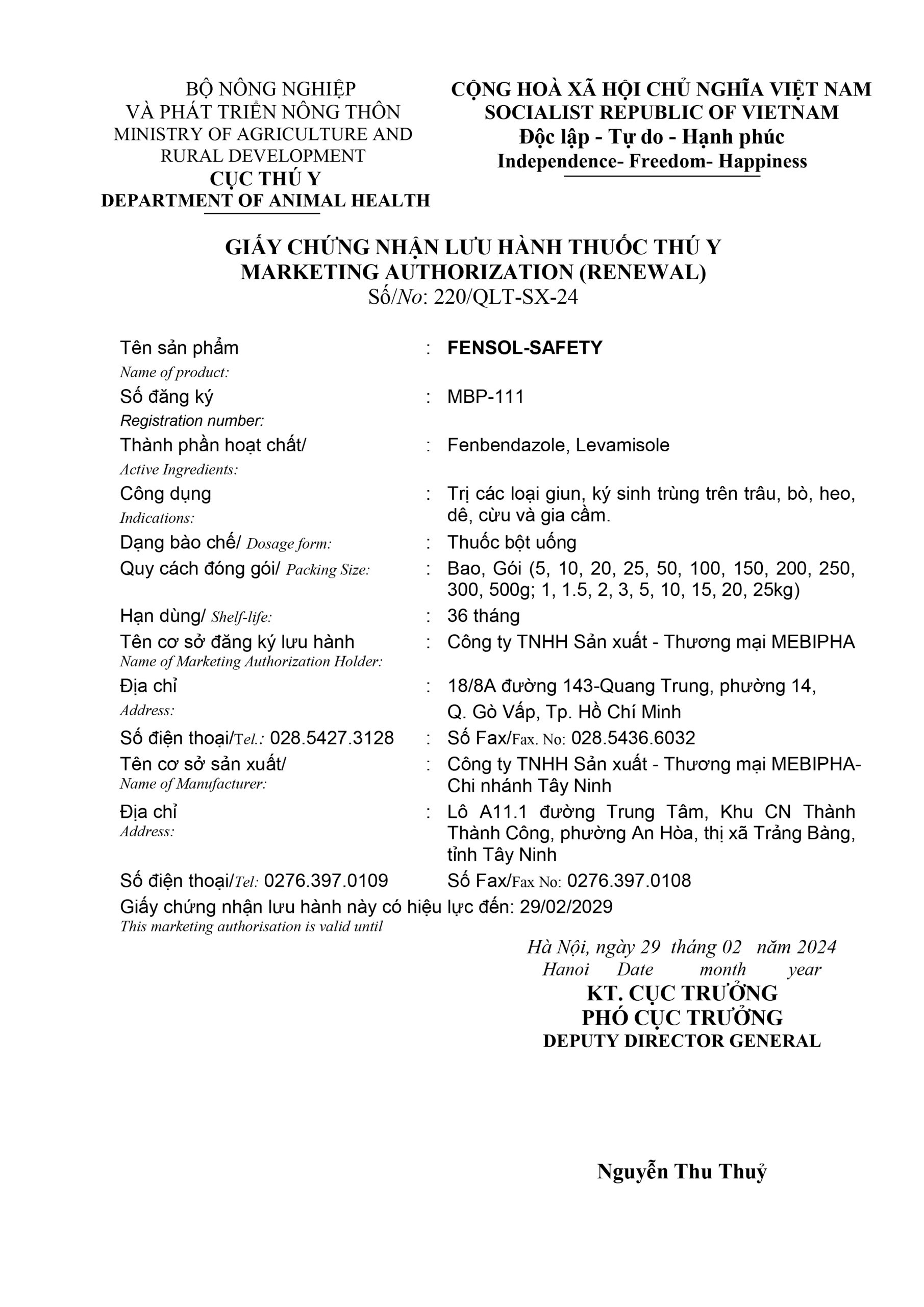 Fenbendazole là một loại thuốc tẩy giun sán phổ rộng thuộc nhóm Benzimidazole, được chỉ định để loại bỏ các loại giun sau: Ostertagia spp., Trichostrongylus spp., Haemonchus spp., Bunostomum spp., Trichuris spp., Contractria spp., Nematodirus spp., Ascaris suum, Oesopagostomum spp., Strongyloides spp., Hyostrongylus rubidus và Dictyocaulus viviparus và Dictyocaulus filaria. Fenbendazole có tác động chống các dạng giun tròn chưa trưởng thành (ấu trùng) và giai đoạn trưởng thành ký sinh trong đường tiêu hóa, hô hấp và đường tiết niệu trên heo và gia cầm. Thuốc cũng có tác động hiệu quả trên trứng giun sán (sán dây).
