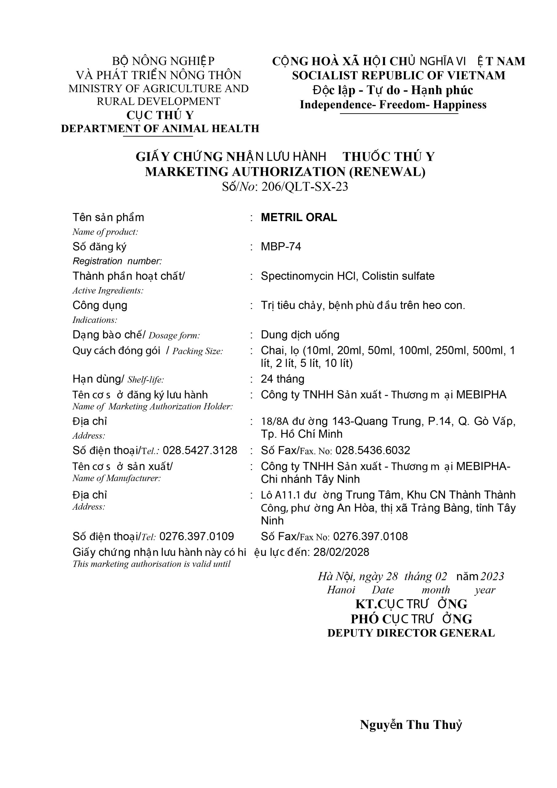 Đặc trị tiêu chảy phân trắng, phân vàng, tiêu chảy phân có máu do vi khuẩn E.coli, Clostridium và bệnh phù đầu trên heo con.