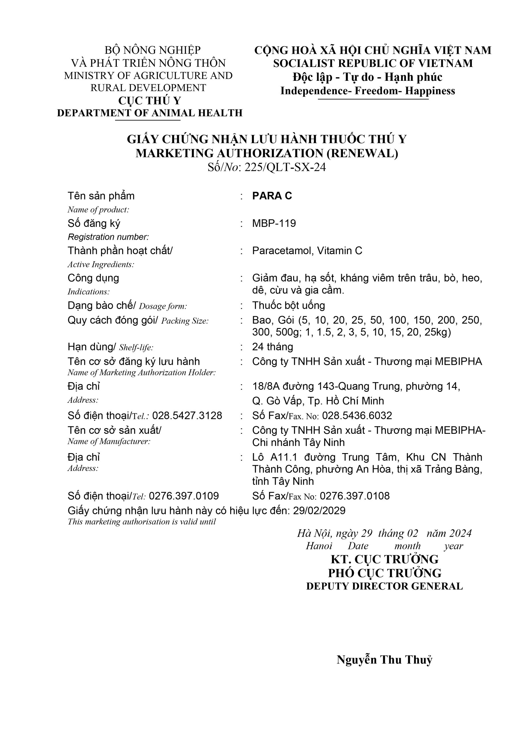 Số đăng ký: MBP-119