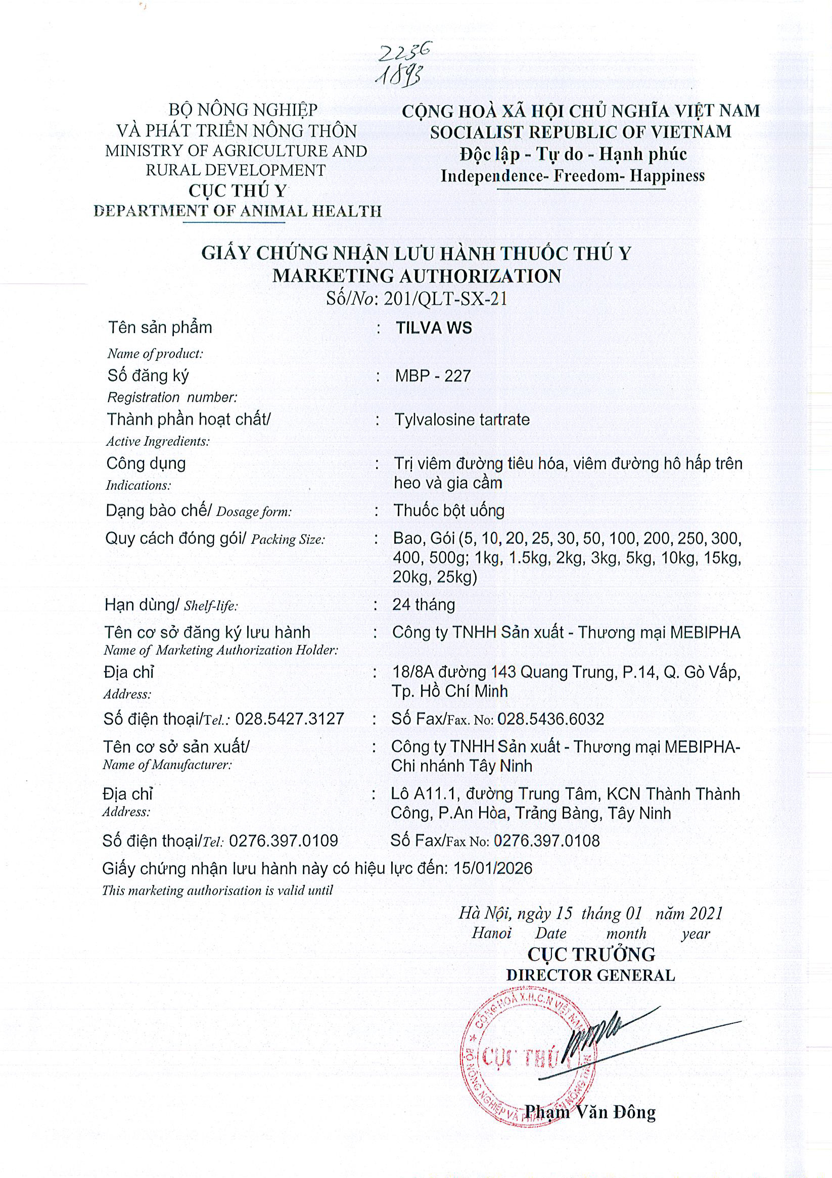 Tylvalosin kháng sinh thế hệ mới thuộc nhóm Macrolide. Khác với các kháng sinh khác trong nhóm Macrolide, Tylvalosin tartrate có khả năng kìm khuẩn, diệt khuẩn và kháng khuẩn. Nó chống lại phần lớn các vi khuẩn Gram (+), các vi khuẩn Gram (-) và Mycoplasma, chống lại các vi khuẩn kháng thuốc, là giải pháp cực kì hiệu quả trong điều trị các bệnh hô hấp và tiêu hóa trên gia súc, gia cầm.