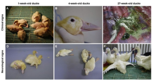 Vi khuẩn khu trú ở vùng mũi hầu, hạch amidan bắt đầu xâm nhập vào hệ thống tuần hoàn hay hạch lympho gây nhiễm trùng huyết, viêm khớp, nhiều dịch khớp và viêm phổi kèm theo xuất huyết, viêm màng não, xuất huyết não. Có các triệu chứng như xáo trộn vận động, liệt nhẹ, triệu chứng thần kinh, run rẩy trợn mắt, nghiêng đầu, lông dựng đứng, da mẩn đỏ và sốt.